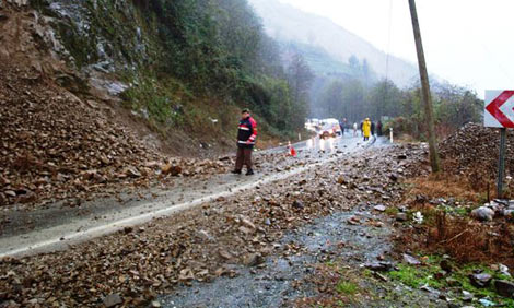 Yola düşen taş parçaları nedeniyle kısmen kapanan yol, Ardeşen Jandarma Komutanlığı trafik timi ile Karayolları ekiplerinin çalışmaları sonucu kısa sürede kontrollü olarak tek şeritten trafiğe açıldı.