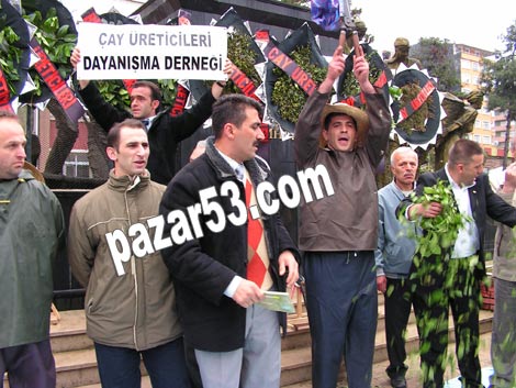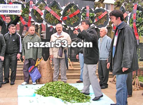Yere yaş ve kuru çay dökerek protesto gösterisi yapan grup, Bizler salona alınmadık. Gerçek üretici biziz. Bu ülkeye sokulan kaçak çay sayesinde üretici zor durumda bırakıldı. Çaya en az 1 YTL verilmeliydi. Kaçak çayı önlesinler. Üreticiler olarak verilen fiyatı protesto ediyoruz dediler.