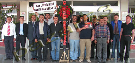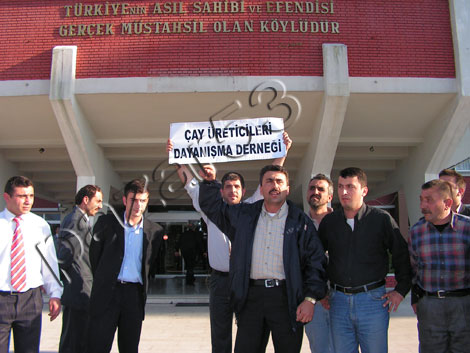 Çaykur önüne gelen dernek başkanı Mustafa Mavi ve yönetim kurulu üyeleri binanın kapısında siyah çelenk bırakarak istiklal marşı okuduktan sonra basın açıklaması yaptı. Dernek Başkanı Mustafa Mavi “Sayın Başbakan 5 yıl önce Rize meydanında çay gerçek fiyatını bulacak çay 750 lira olmalı derken 5 yıl aradan geçti ve hala destekleme primi ile birlikte 73 kuruşta kaldı fiyat. Biz dilenci değiliz. Kimseden sadaka istemiyoruz. Kuruşlarla uğraşacak halimiz yok. Dilenciye 1 YTL verdiğimizde küfür ediyor.” dedi