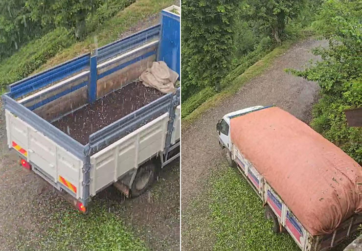 Rize’nin Pazar ilçesinde dolu yağışı üreticilerin çay bahçelerinden kaçışmasına sebep oldu.