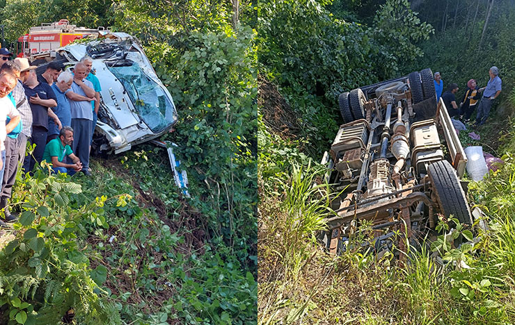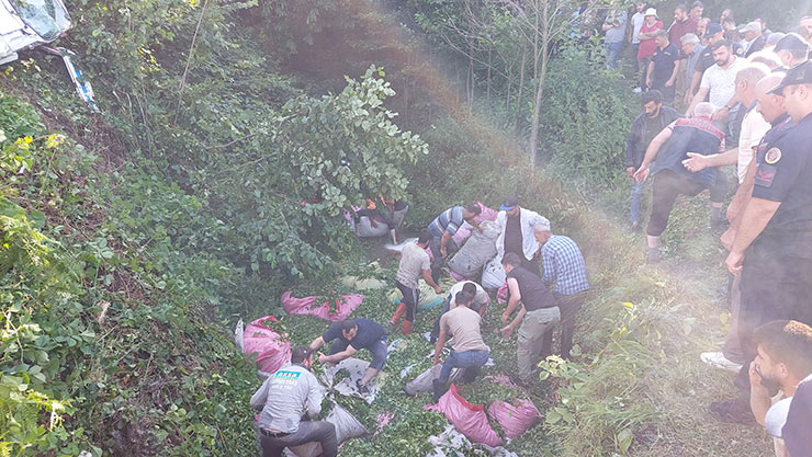 Yaralılarının tedavisinin sürdüğü öğrenilirken, ters dönen kamyonet kepçe yardımıyla düştüğü yerden çıkartıldı.