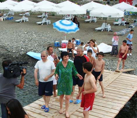 Limanköy plajında Rize ilinin değişik okullarında okuyan 8 öğrenci ile birlikte bir süre sohbet eden Rize Valisi Kasım Esen daha sonra çocuklarla beraber denize girdi.