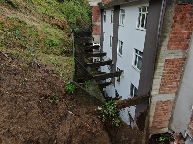 Rize'nin Çayeli ilçesi Eskipazar Mahallesi'nde sabah 5.30 sıralarında yaşanan heyelanda toprak kütlesi binaların içerisine girdi.