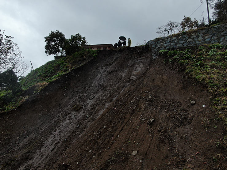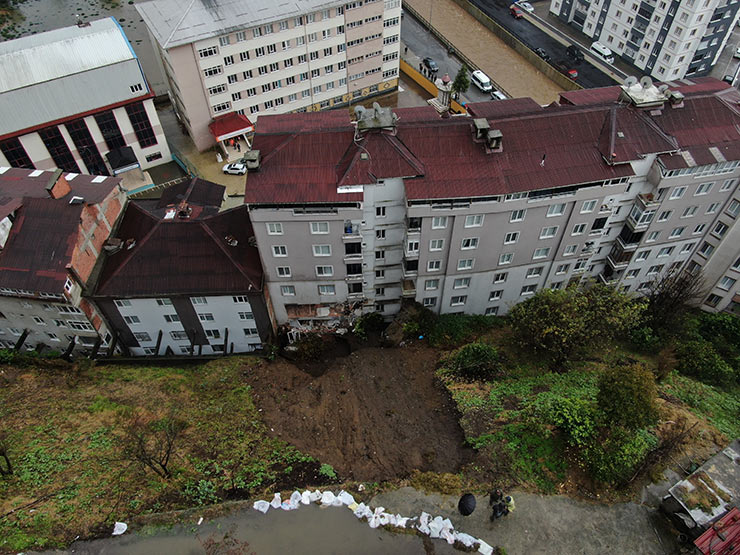 Yamacın altında bulunan 6 bina da tahliye edildi. 64 dairenin tahliye çalışmaları tamamlandığı bölge havadan görüntülendi.
