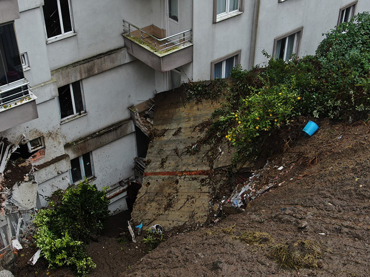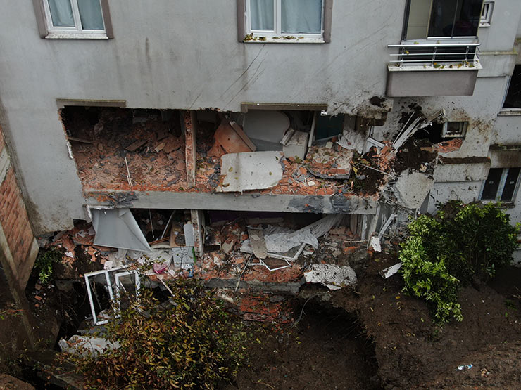 Heyelan nedeniyle toprağın girdiği apartmanda 1 kişi öldü, 4 kişi yaralandı.