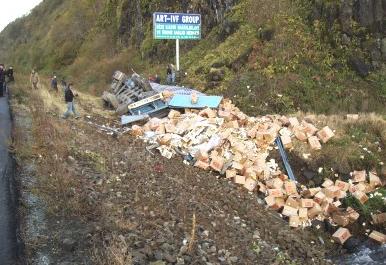 Trabzon'dan Batum'a gıda maddesi taşıyan TIR'ın yoldan çıkıp sürüklenmesiyle meydana gelen kazada 1 kişi hayatını kaybetti.