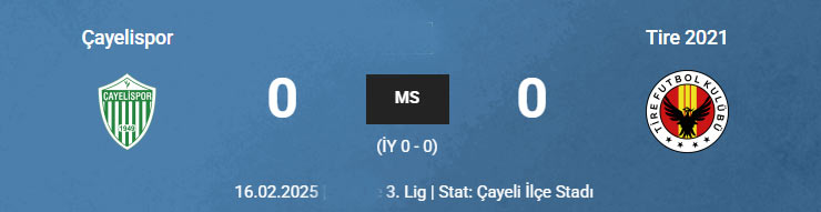 TFF 3. Lig 2. Grup 20. hafta maçında Smart Holding Çayelispor, kendi sahasında Tire 2021 ile 0-0 berabere kaldı