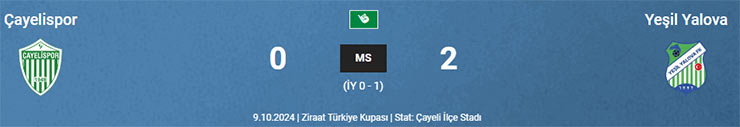 Smart Holding Çayelispor Yeşil Yalova takımına evinde 2-0 yenildi ve kupaya veda etti...