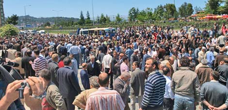 Çaykur'da çalışan yaklaşık bin dolayında işçi, Rize'de bulunan Çaykur Genel Müdürlüğü önünde toplanarak Rize-Artvin Karayolu'nun bir şeridini araç ulaşımına kapattı.