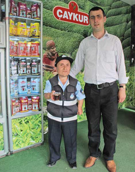 Çaykur TIR'ı sorumlusu Mehmet Tatoğlu ise Tokat Belediyesi'nde 14 yıldır zabıta memuru olarak görev yapan 98 santimetre boyundaki Rizeli Murat Satar'a çay ikramı yaptı.