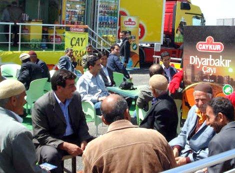 İkram aracında, Mart ayı başında piyasaya çıkan ve tanıtımı daha önce yapılan bölge insanının damak lezzetine ve beğenisine uygun olarak özel harmanlardan hazırlatılan 'Diyarbakır çayı'nın da ikram edildiği vurgulandı.