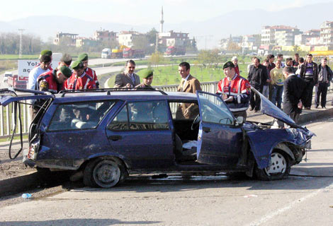 İstanbul'dan Rize'ye cenazeye gidenleri taşıyan otomobilin Samsun'da köprü bariyerlerine çarpması sonucu meydana gelen trafik kazasında 2 kişi hayatını kaybetti, 5 kişi yaralandı.