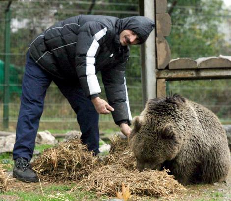 Gün boyunca özel olarak yapılan yükseklikler ve ağaç kütükleri üzerinde oynayarak ve uyuyarak geçiren sevimli ayı, barınağın yanına yaklaşan bakıcısını görünce sevinç gösterilerinde bulunuyor. İçerisine fındık fıstık ve kuru üzüm saklanan saman balyasını bakıcısının elinden almaya çalışan Datvi, pençeleri ile samanları açarak yiyeceklerini bulmaya çalıştı.