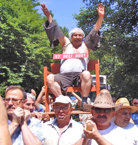 Başkanları Metin Kaya'yı "17 Deli 001" yazılı tahtadan yapılmış tahta oturttuktan sonra sırtta taşıyarak davul-zurna eşliğinde kongrenin yapılacağı alana giden dernek üyeleri, burada neşeli anların yaşanmasına sebep oldu.