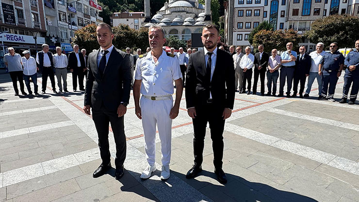 Demokrasi Meydanı’ndaki törende, Pazar Liman Başkanı Sultan Süleyman Taşçı tarafından Atatürk Anıtı'na çelenk sunulmasının ardından, saygı duruşunda bulunuldu ve İstiklal Marşı okundu.