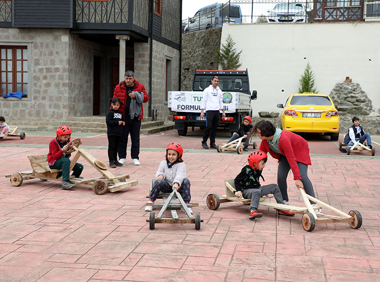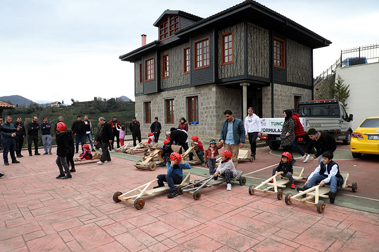 Rize'de Formulaz Derneği, Kahramanmaraş merkezli 6 Şubat'taki depremlerin ardından kente gelen afetzede çocuklar için tahta arabalarla şenlik düzenledi.