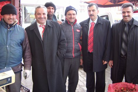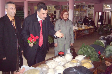 Pazar Belediyesi'ndeki köy pazarında alışveriş yapan Dr. Ahmet Basa, burada da gül dağıtarak pazaryeri sakinlerinin sorunlarını dinledi.