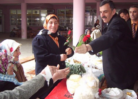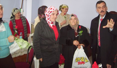 Daha sonra Pazar Halk Eğitim Merkezi tarafından açılan kurslarda incelemeler yapan AK Parti heyeti burada da kursiyerlere gül dağıtarak destek istediler.