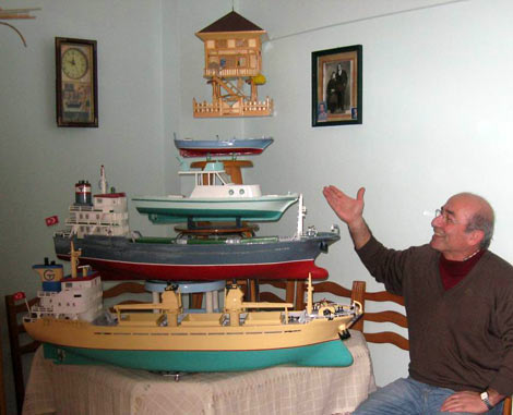 Yıllarca deniz yollarında çalıştıktan sonra emekli olan Rize Pazarlı Talat Tafralı, hasretini şimdi gemi ve serender maketleri yaparak bastırıyor...