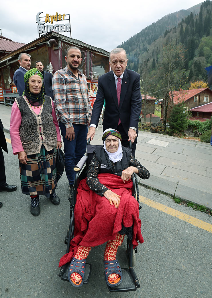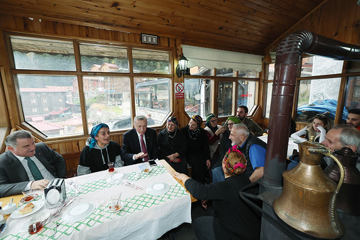 Erdoğan, Ayder'den ayrılırken kendisine sevgi gösterisinde bulunan vatandaşlarla fotoğraf çektirdi.