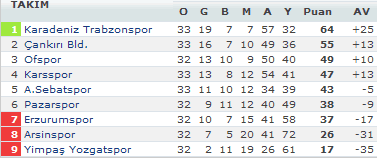 Bu skorla 7. sıradaki Erzurumspor puanını 37'ye yükseltirken, bir maç fazlalığı olan 5. sıradaki Akçaabat Sebatspor ise 43 puanda kaldı.