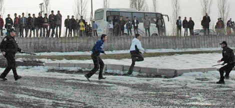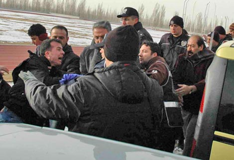 Erzurum'daki maçtan sonra çıkan olaylarda 14 taraftar yaralanırken polis, aralarında Erzurumsporlu yöneticilerin de bulunduğu 24 kişiyi gözaltına aldı.