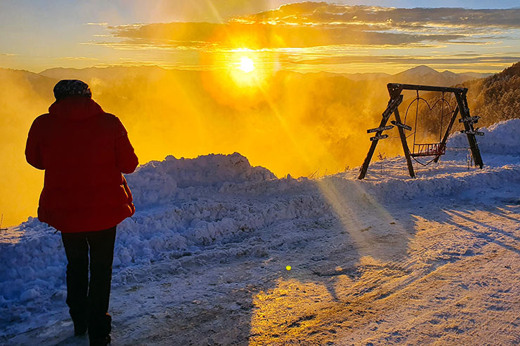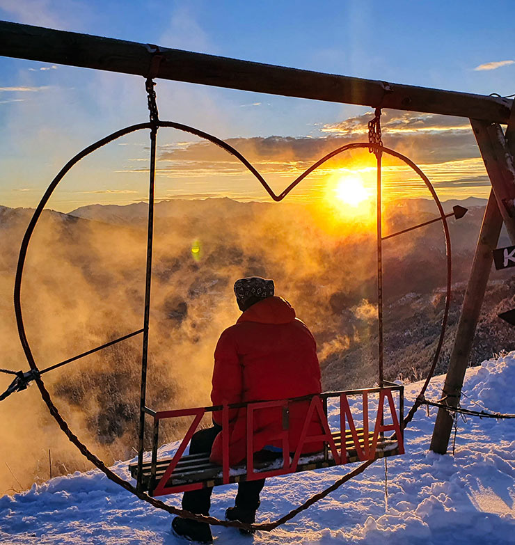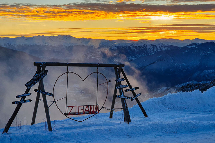 Zigana Dağında gün batımında çekilen fotoğraflar doğanın ihtişamını ölümsüzleştirirken, bölgede bulunan dev salıncaklar da alanın manzarasını panoramik olarak izleme imkanı sunuyor.