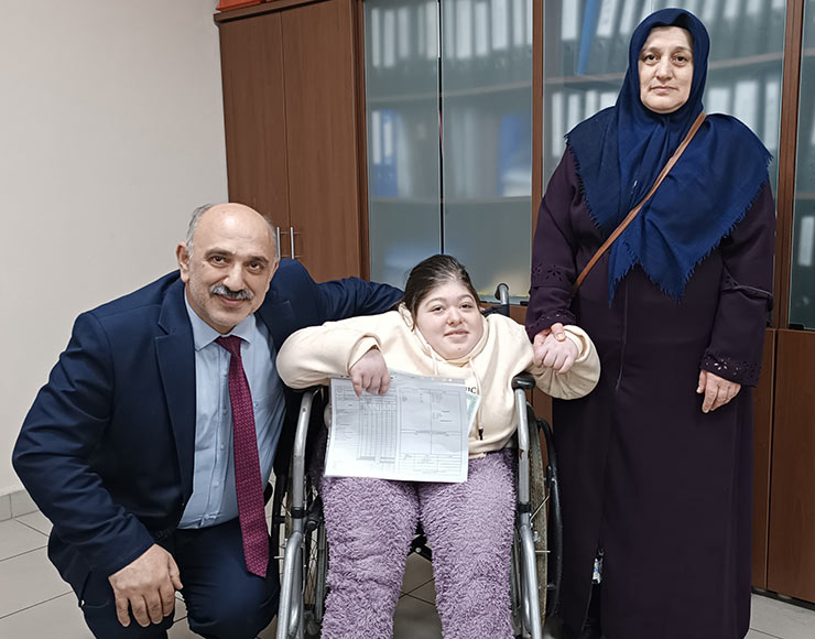 2024-2025 eğitim ve öğretim yılının ilk döneminde de evde eğitim görerek tamamlayan Medine bu kez karnesini evinde değil diğer arkadaşları gibi olması gerektiği yerde, tekerlekli sandalye ile getirildiği okulunda aldı.