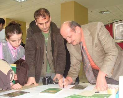 Rize Vali Yardımcısı Fuat Gürel, Rize Belediye Başkanı Halil Bakırcı günün anısına serginin afişine duygularını yazarak imzaladılar