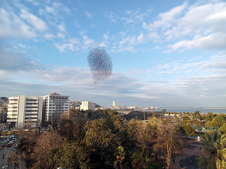 Cumhuriyet Meydanı ve liman civarında uçan sığırcıklar, çıkardıkları seslerle de dikkat çekiyorlar. Güneşin batma saatlerinde şehrin üzerine gelen binlerce sığırcık gökyüzünü bulut gibi kaplarken, yaptıkları akrobatik hareketlerle ilgi topluyorlar.