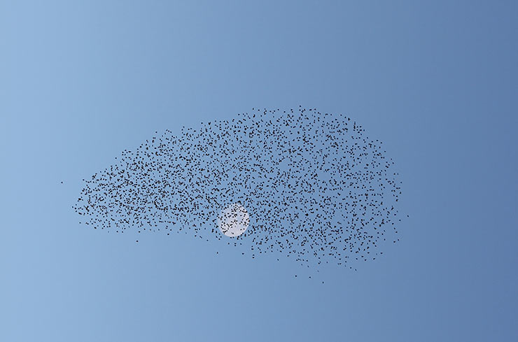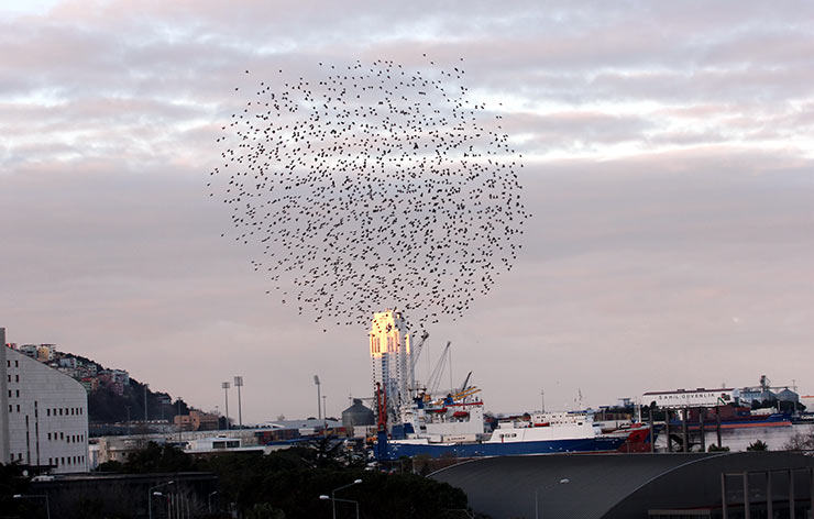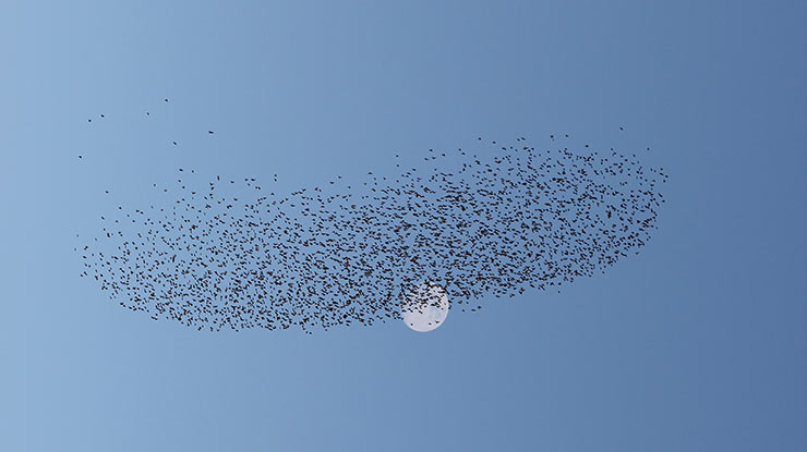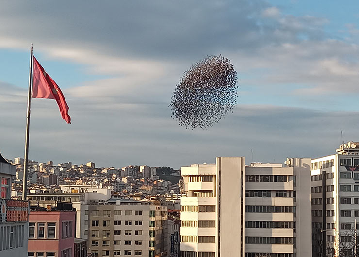 Binlerce sığırcık akşam saatlerinde Samsun semalarında sahneye çıkıyor.