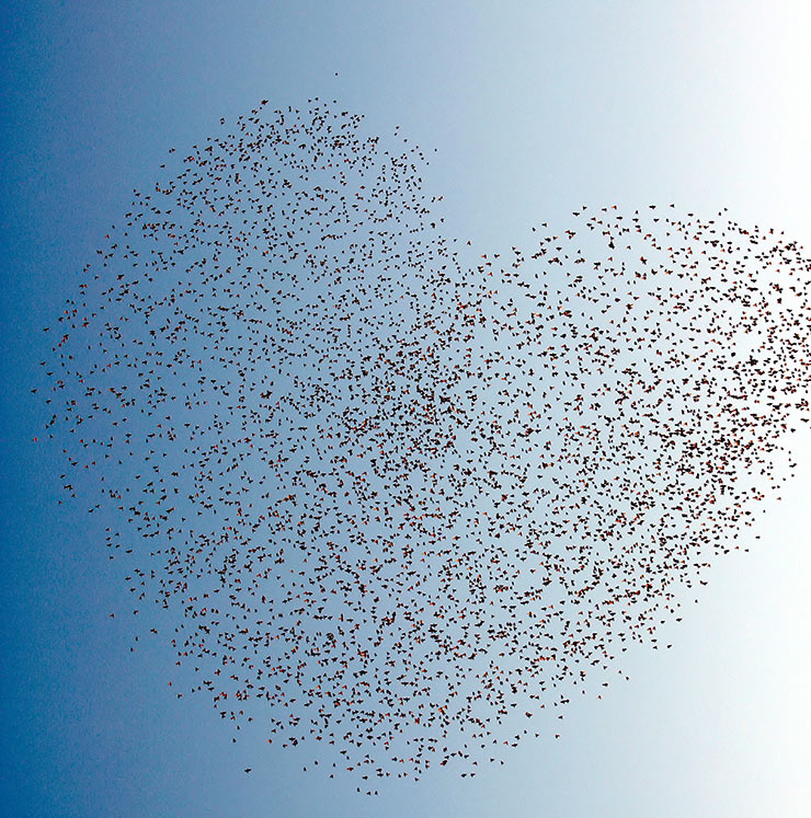Gökyüzünde kalp çizen sığırcık sürüsü, objektiflere böyle yansıdı.