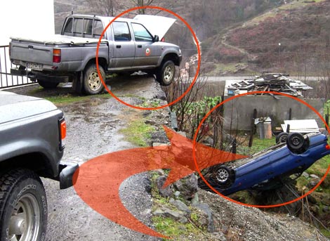 Artvinde park halindeki resmi araç, kısa devre sonucu çalışıp ilerlemeye başladı ve çarptığı park halindeki bir otomobili uçurumdan yuvarladı.