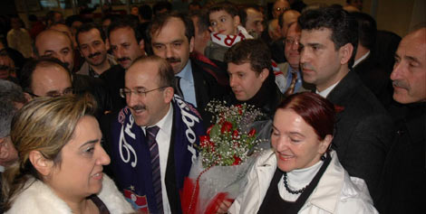 Başbakan Recep Tayyip Erdoğan tarafından geçen Cuma günü Ankara'da AK Parti Trabzon Belediye Başkan adayı olarak açıklanan eski Sağlık Bakanlığı Müsteşarı Orhan Fevzi Gümrükçüoğlu, bugün Trabzon'a dönüşünde başbakan gibi karşılandı.