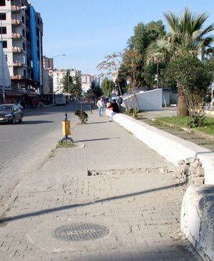 Rize Blediyesi tarafından dikilen reklam tabelasıyla bu şekilde kaldırım işgal edilmişti.