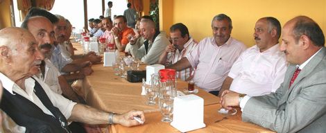 Bakırcı, toplantı sonunda Rize'de en uzun süreli muhtarlık yapan Gülbahar Mahallesi Muhtarı Fikri Yenigün'e şapka hediye etti.
