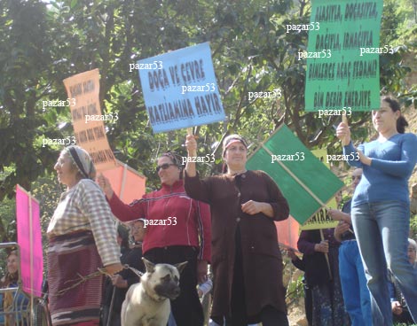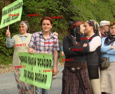 Çoğunlukla kadınlardan oluşan göstericiler, HES kurulacak bölgede canlı varlık olmadığı yönünde yapılan açıklamalara da tepki vererek, derede yakaladıkları kırmızı benekli alabalıkları örnek gösterdi.