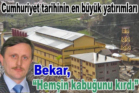 Hemşin'in Cumhuriyet tarihinin en büyük yatırımlarını AK Parti hükümeti döneminde aldığını söyleyen Bekar, Maalesef Hemşin ilçemiz, ciddi projeler gündeme getirilemediği için yıllarca kabuğuna hapsolmuştur. Bizzat parti teşkilatı olarak bu fabrikanın kurulması için gece gündüz çalışmış, konuyu başbakanımıza kadar taşımışızdır. Bu fabrika Sayın Başbakanımızın Hemşin'e bir armağanıdır. dedi.