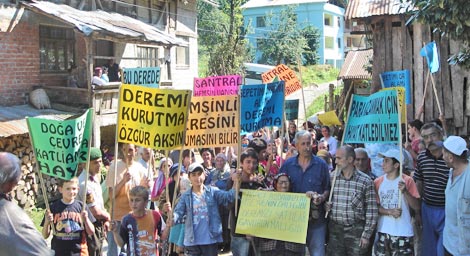 Ellerinde Santral Hemşin vadisine saldırıdır, Doğa ve çevre katliamına hayır, Ağacı budamazlar meyvenin dalı gibi; deremizi sattılar gâvurun malı gibi şeklinde dövizler taşıyan vatandaşlar, Hemşin deresini kurutacak bir santrali kabul etmeyeceklerini söylediler.