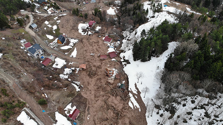 ARTVİN (İHA) - Artvin’de merkeze bağlı Çamlık mahallesinde meydana gelen heyelanda çok sayıda ev hasar gördü.