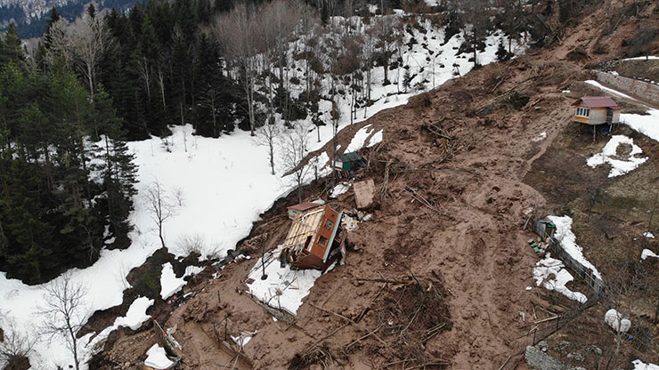 Heyelan sırasında, yapısal bütünlüğünü kaybetmeyen bir ev, altındaki toprağın kayması sonucu önce yan yattı, ardından taklalar atarak devrildi. O anlar, bölgedeki vatandaşlar tarafından cep telefonu kameralarıyla saniye saniye kaydedildi.