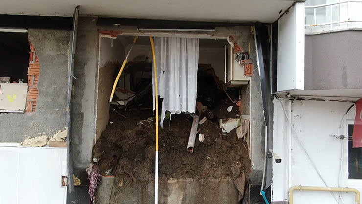 Rize'de heyelan nedeniyle tahliye edilen apartman sakinlerinin bekleyişi sürüyor