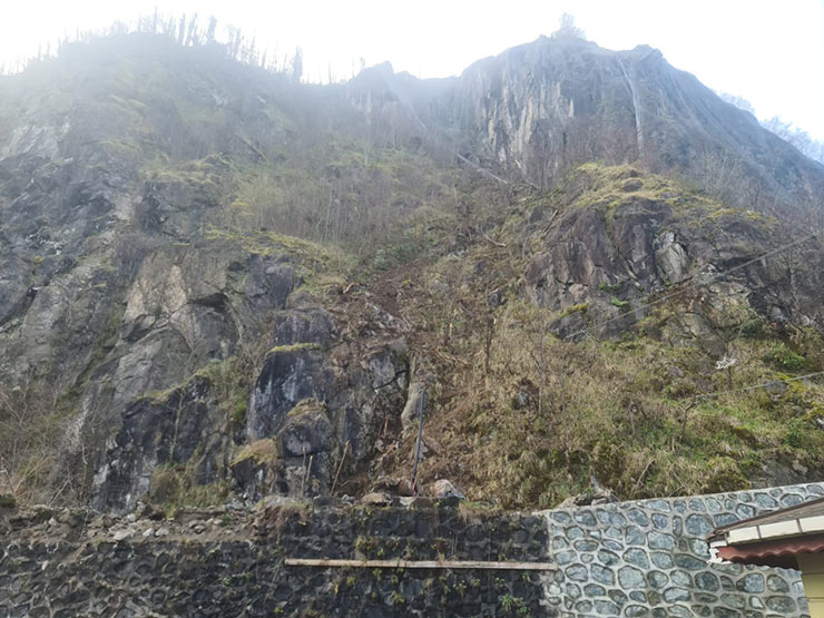 ARTVİN (AA) - Hopa-Kemalpaşa arasındaki Kopmuş Tır Parkı'nın arka tarafındaki yamaçtan kopan kaya parçaları iki konteyner ve bir tıra çarptı.