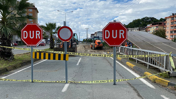 Trafik aksamaması için derenin karşısındaki alternatif yoldan kontrollü olarak verilmeye başladı. Çöken yolda ekiplerin çalışması devam ediyor.