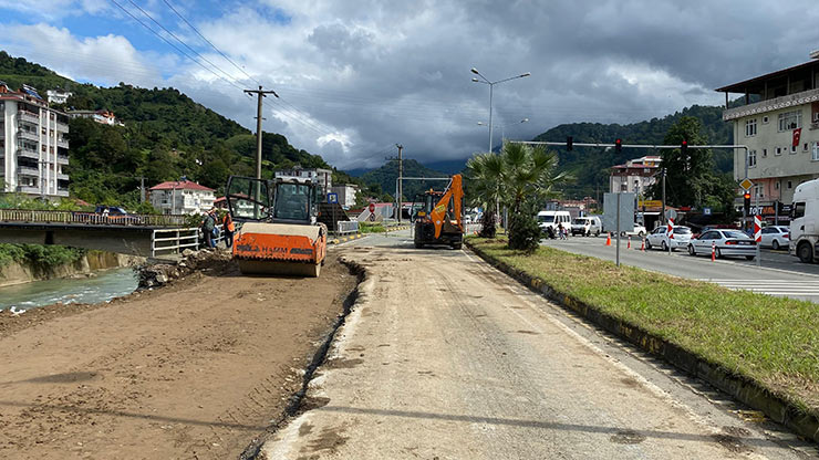 ARTVİN (İHA) - Artvin’in Hopa ilçesinde Sundura Deresinin taşması sonucu 3 gün önce çöken Hopa-Artvin karayolunda çalışmalar devam ediyor.