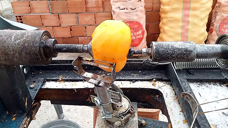Muhammet Mert Gödek, AA muhabirine, makinenin çalışma prensibinin, demir kollarla sabitlenen meyvenin, dikiş makinesinden çıkma küçük motor yardımıyla döndürülmesi ve kabuğunun yan taraftaki kesiciyle soyulmasına dayandığını söyledi.