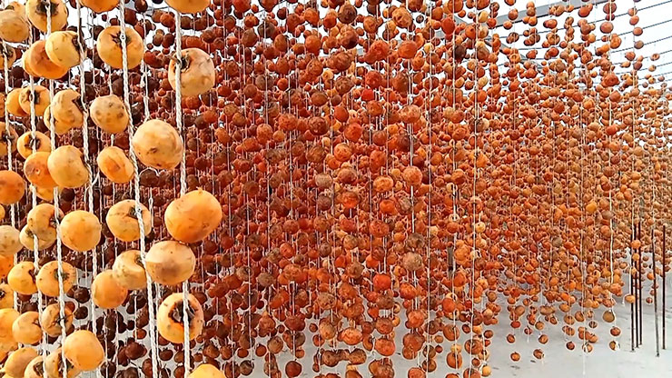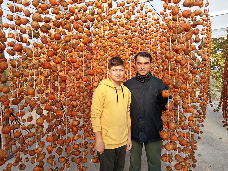 Sonbaharda, toplanan Trabzon hurmalarını soyarak ipe dizen Gödek ailesi, "cennet hurması" olarak da bilinen meyveyi satarak gelir sağlıyor.