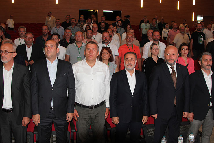 Şubenin olağan genel kurulu, divan kurulunun oluşturulmasının ardından saygı duruşu ve İstiklal Marşı’nın okunmasıyla başladı. Toplantının açılışında, şube yönetimi adına Şube Başkanı Orhan Topaloğlu bir konuşma yaptı.