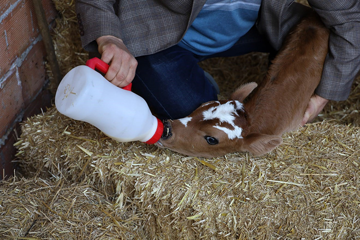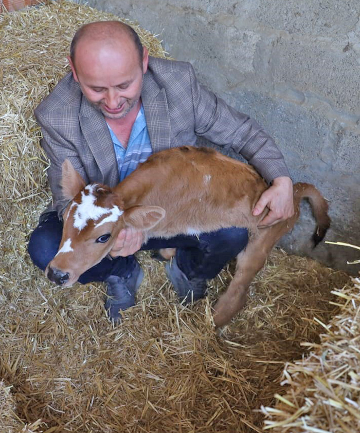 İlçeye bağlı Gazibeyli Mahallesi’nde yaşayan çiftçi Hamdi Dağ’a ait inek, ön ayakları olmayan bir buzağı dünyaya getirdi.