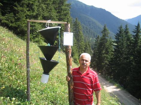 İkizdere ilçesindeki ormanlarda böceklerin meydana getirdiği zararları önlemek amacıyla Feromon Kapanı denilen tuzaklar kuruluyor.